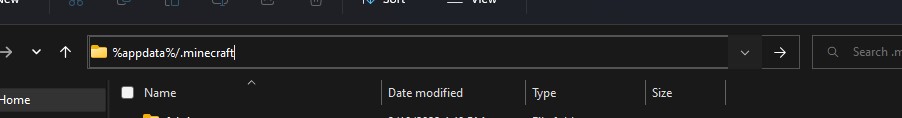 4. Type "%Appdata%/.minecraft/" on the navigation bar, (NOT THE SEARCH BAR!)