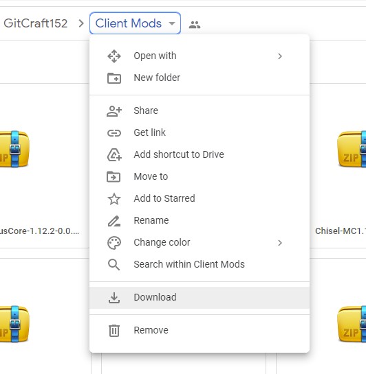 2.This will download the Zipped file of all the mods required, you will need to extract this to a folder.
